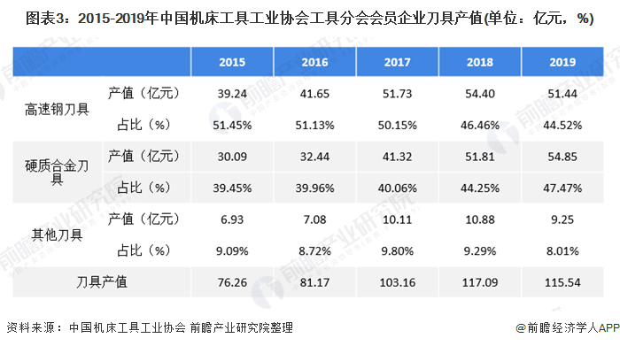 硬質(zhì)合金刀具產(chǎn)值占比逐步提升
